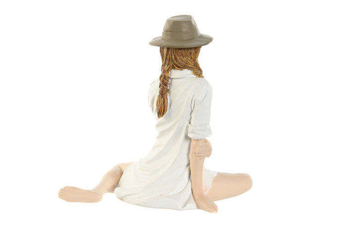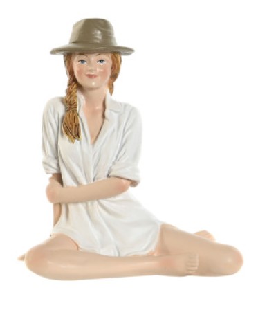 Figura de resina. Chica con sombrero y sobre camisa de pequeñas dimensiones.