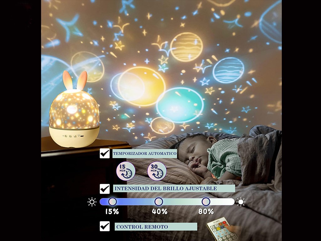 ✨ Convierte cada noche en un momento mágico con la Lámpara Proyector de Estrellas Rabbit.