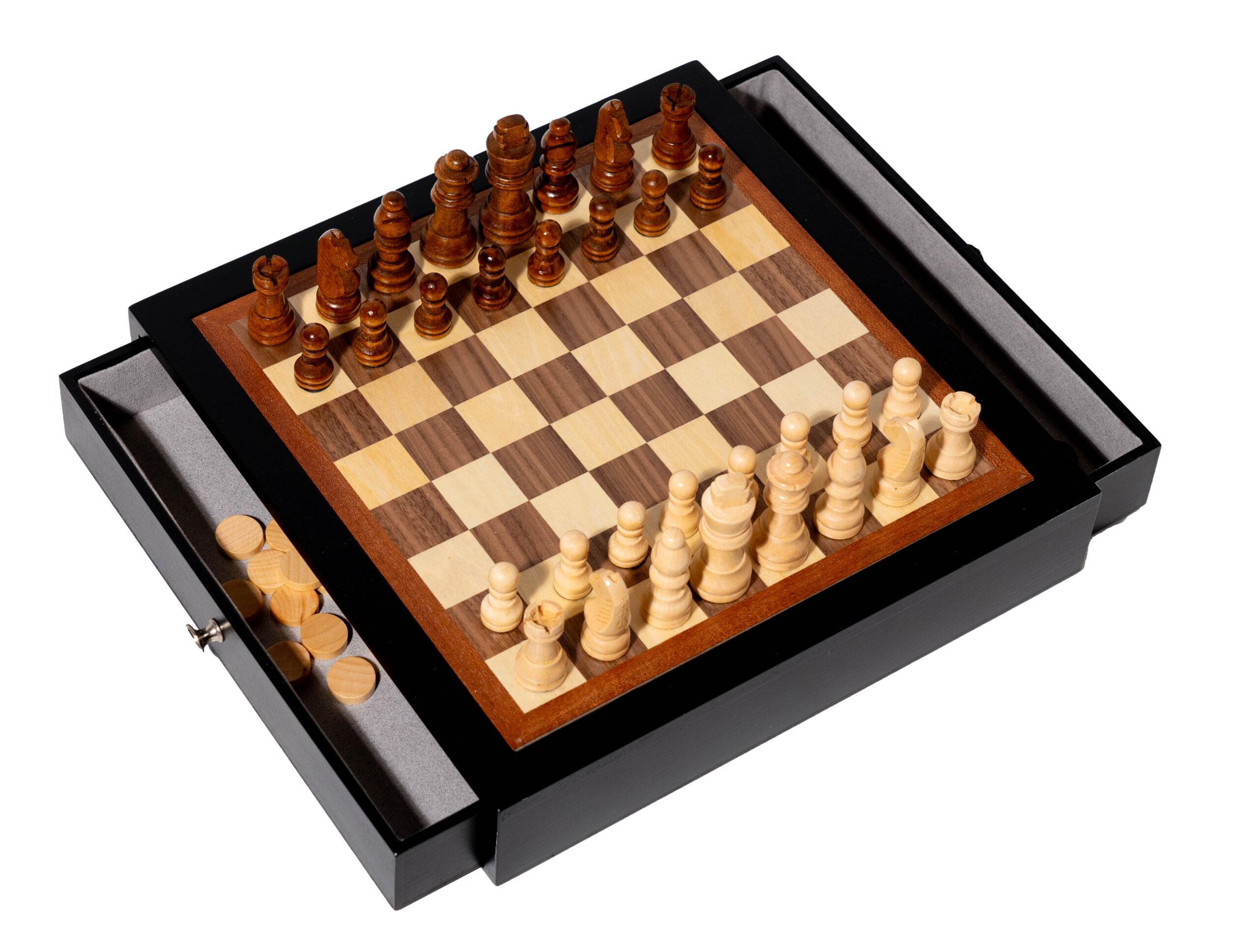 🧠Incluye cajones para guardar las piezas. Tanto el ajedrez como las damas son juegos que estimulan el pensamiento estratégico, la concentración, la planificación a largo plazo y la resolución de problemas. Jugar regularmente puede contribuir al desarrollo cognitivo y mejorar las habilidades mentales.