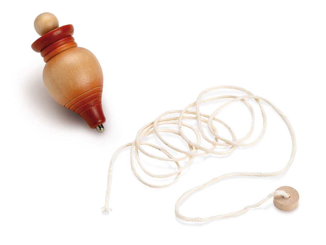 Es uno de los juegos tradicionales más populares y extendidos, consistente en una pieza en forma de cono acompañada de una cuerda. Enrollando la cuerda alrededor de la peonza y sacudiendo con fuerza de uno de sus extremos a la vez que se lanza el conjunto contra el suelo, se consigue que la peonza rote sobre su punta, manteniéndose erguido y girando en el suelo.