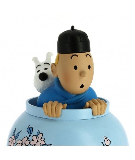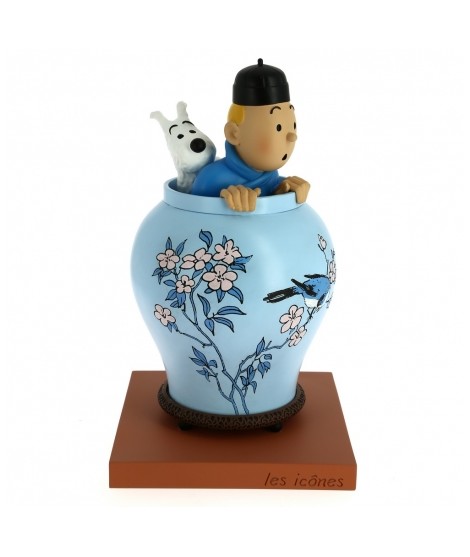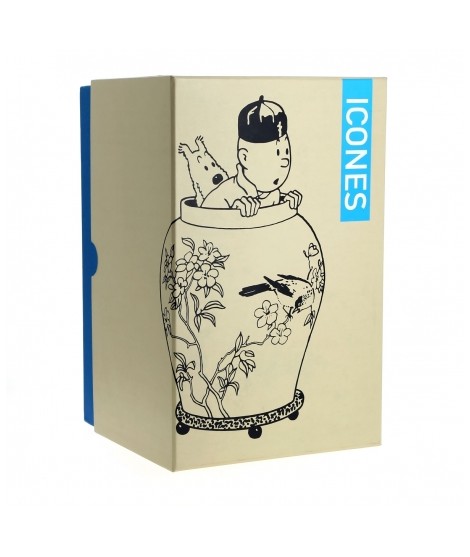 Figura de resina del jarrón chino de la portada de El loto azul con Tintín y Milú en su interior. Esta reproducción, de 20 cm., forma parte de Les icônes, la nueva colección con los objetos más representativos de Las aventuras de Tintín. Características Material: Resina policromada (pintada a mano) Medidas: 22’5 cm. (altura) Edición: Numerada Contiene: Certificado de autenticidad Año de producción: 2017 Medidas caja: 31x20x20 cm.